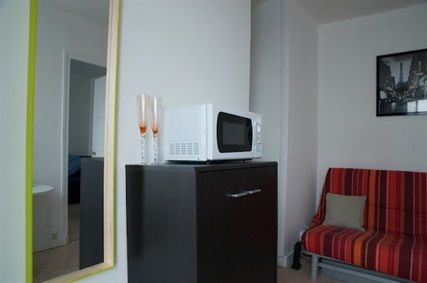 With a pleasant area of over 300 sq ft, Les Abbesses offers the capacity to accommodate 5 guests thanks to a bedroom with a double and single bed and a convertible sofa in the living room. Cozy and brightly lit, this apartment comes entirely renovated and fully equipped for you to unveil a homey living space to share with family or with friends. A furnished kitchen allows you to prepare meals at home, and a modern bathroom with a shower completes this apartment. From the 5th floor location (with an elevator), enjoy a clear view of the lovely rooftops of Paris, which will not leave you unmoved.