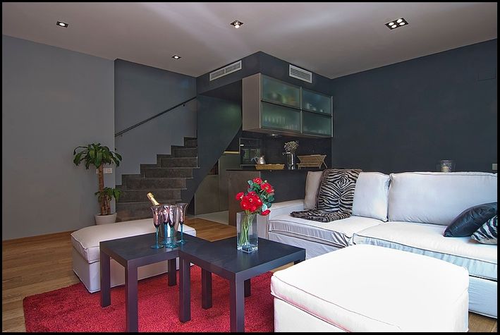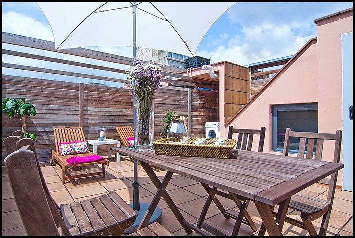 This triplex apartment has a surface of approximately 80 M2 and a terrace with a surface of approximately 35 m2. It is found in a building with elevator. There is a community area with a swimming pool. If you wish, you can rent a private Parking for 20 € per day. The closest metro station is Joanic. This comfortable and elegant apartment is divided into three different levels. It can accommodate up to 6 people in 2 bedrooms with 1 double bed, 2 single beds and a double sofa-bed. The apartment has a complete bathroom. In the living room you can find 1 double sofa bed and the entrance onto a balcony. The kitchen is fully equipped with dishwasher, coffee machine, electric kettle, oven, fridge, fridge / freezer and cooktop. On the first level, there is the spacious living room with its design furniture, a double sofa bed, a TV plasma and the entrance onto a balcony. On this level you will find also a fully equipped kitchen. On the second level, you will find the two double bedrooms. One of these has a double bed and the other one has two single beds. Both bedrooms have an entrance onto a balcony. Next to the bedrooms, you will find the complete bathroom. On the third level you will find a spacious terrace to relax, sunbathe, have a drink, etc. There is also an optional parking in the same building.