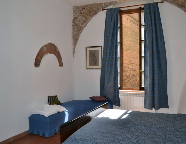 ------------Appartamento di circa 70 mq, al piano terra di un antico palazzo nel centro storico di Siena, a pochi metri dall'Accademia Chigiana e dietro Piazza del Campo. Composto da soggiorno, cucina, bagno, camera da letto molto ampia con letto matrimoniale e letto singolo. Soffitti con travi antiche, mattoni a vista e pavimento in cotto nello stile tipico toscano. Possibilità di aggiunta di un quarto letto nel soggiorno.