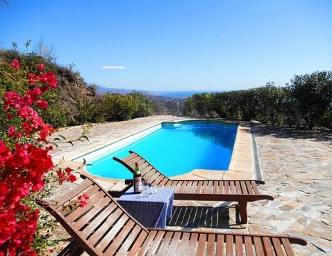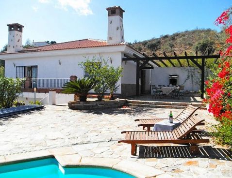 Macharaviaya 11 km from Rincón de la Victoria: Large, beautiful, cosy single-family house "Don Martín", built in 2004. Outside the resort, 2.5 km from the centre of Macharaviaya, in a quiet, sunny position, 6.5 km from the sea, in the countryside, south-east facing position. Private: natural garden, swimming pool angular (8 x 4 m, 01.03.-30.10.) with internal staircase. Outdoor shower, arbour (35 m2), terrace (50 m2), garden furniture, barbecue. Motor access to 200 m from the house (1.2 km via unmade road). Shop 2.5 km, restaurant 2.5 km, bar 2.5 km, bakery 2.5 km, bicycle rental 11 km, sandy beach 6.5 km, indoor swimming pool 5 km. Golf course (18 hole) 6 km. Please note: car recommended. Baby equipment on request (extra). On request: airport transfer to the holiday accommodation.