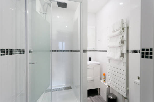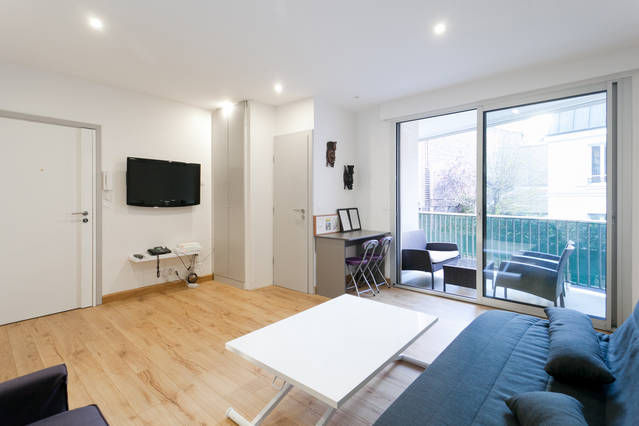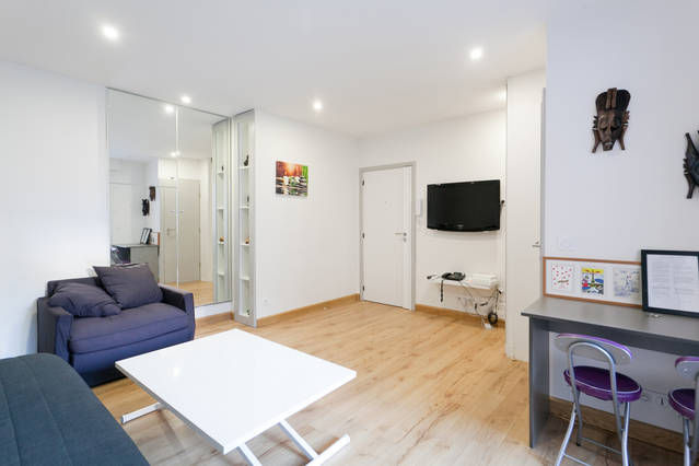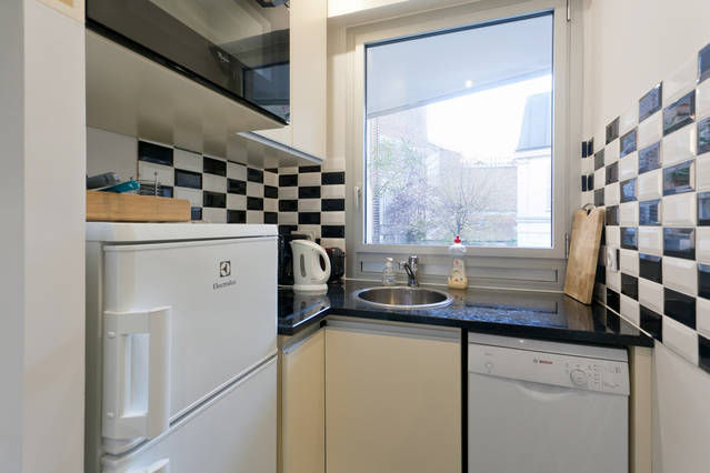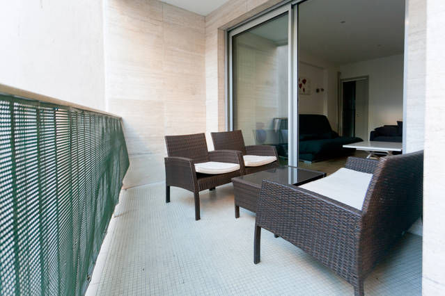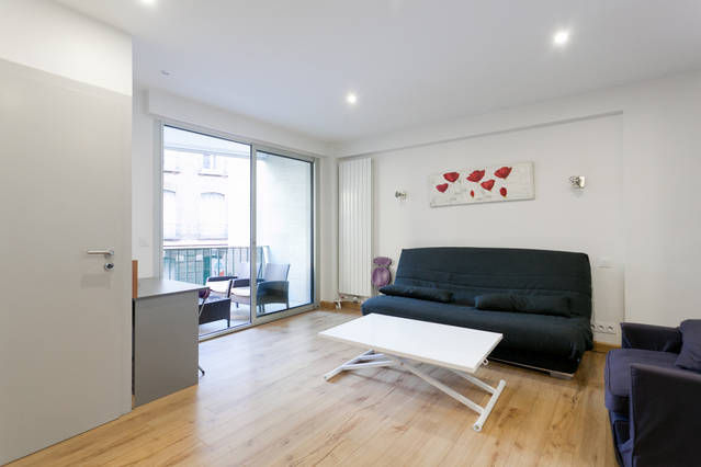 This property offers a living room with a large picture window, free wifi internet connexion, convertible sofa for 2 persons as well as a convertible armchair for 1 person, screen flat television, desk, washing linen machine and a very nice terrace with a table and chairs, cupboard. A separate fully equipped kitchen : dishwasher, induction cooker, oven and microwave, fridge. Bathroom has a large shower, washbasin and toilets