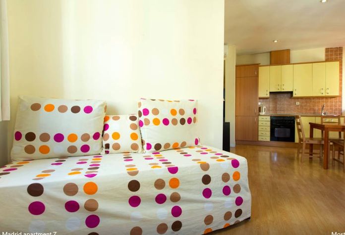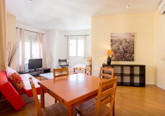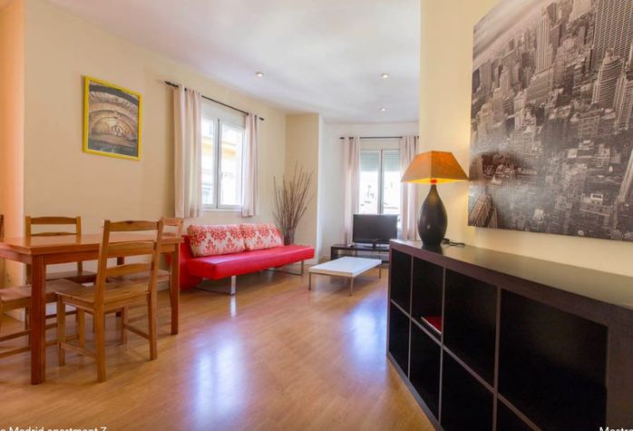 This 1 bedroom apartment in the dynamic neighborhood of Centro, Madrid, Madrid sleeps 5 guests. The 65m2 apartment has 1 double beds, 1 sofa beds, and 1 bathrooms Enjoy fast internet access with complimentary WiFi. For your convenience, the apartment is equipped with amenities like Bed Linen & Towels, Kitchen, Wireless Internet, TV, Air Conditioning, Washing Machine, Elevator, and Balcony € 200 security deposit will be collected upon check-in and returned upon check-out. Check in: 15:00 Check out: 11:00 Please inform the host your estimated arrival time to ensure a smooth check-in process. Children of all ages are welcome. Pets are not allowed in the apartment Smoking is not allowed in the apartment About Centro, Madrid As the name might suggest, Centro is the heart of Madrid and home to some of the city's most visited landmarks. Its history, sights, culture, food and nightlife could occupy any traveler for days. Start off in Madrid's geographical center and busiest plaza, Puerta del Sol, meaning Gate of the Sun. The name comes from the 15th century when it used to be an eastern-facing gate of the walled city, welcoming the sun daily. Today it is a busy hub and meeting place for locals and an excellent spot for people watching. A few minutes stroll away from Puerta Del Sol sits another famous landmark, the vast cobble-stoned Plaza Mayor.