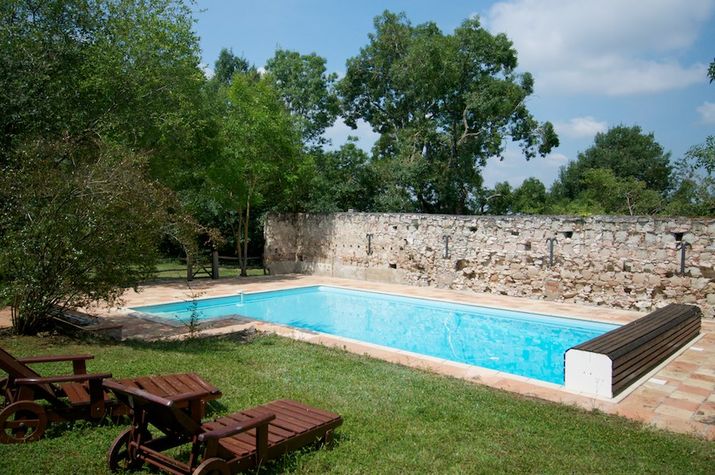In our cottages you will find all you are dreaming of for a perfect family holiday: • A spacious, fully-equipped holiday house on a 4ha private property, i.e. • 4ha playground for your kids • A large pool (pleasant, healthy salt water instead of chlorine) • Optional breakfast (on demand) • World-famous historical sights only ± 1 hour away (Carcassonne, Toulouse, Albi, Canal du Midi…) • All around only nature, twittering birds and apart from the: quiet • Your kids can ride our pony • Extensive leasure and sports facilities in the surroundings Are you missing anything? Please ask us! Maybe we have just forgot to mention it. ;-) This holiday house for 9 – a renovated farm house that has retained its charm – is surrounded by nature: fields, acres and the park of the Château de Dournes. It offers on the ground floor a fully-equipped kitchen (large dining table, dishwasher, cooker, microwave, toaster, fridge, freezer…) and a spacious living room, partly furnished with 19th century antiques, with satellite TV (29" flat screen). The 3 bright bedrooms are on the 1st floor just like the bathroom (shower + bathtub). You will love the excellent mattresses. In front of the house, at the table, you will enjoy the panoramic view on the countryside. Your kids have plenty of space to play here (the property is more than 4ha!). In the evenings, after a day full of experiences you will enjoy a comfortable BBQ with a good bottle of wine in front of the house. The sunsets are marvelous there! On the other side of the house there is the large pool (12x6m) that is used by all guests on the property. It's filled with pleasant, healthy salt water instead of chlorine. (The salt concentration is 1/10 of that of the sea.) Bed linen and towels are provided free. They are washed weekly. Free WIFI at the chateau 20 steps away.
