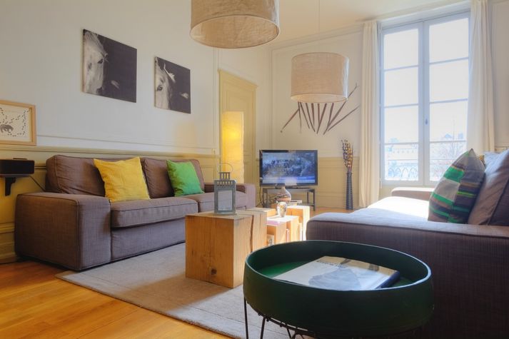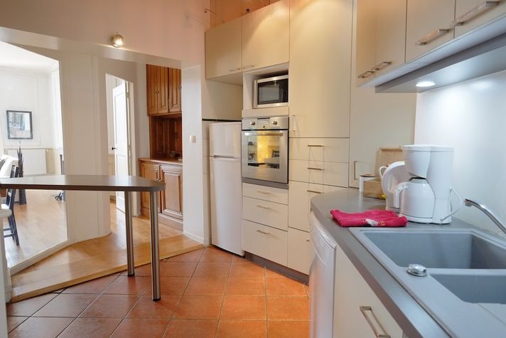 The apartment in Lyons has 2 bedrooms and has capacity for 6 people. The apartment has 110 m². The accommodation is equipped with the following things: elevator, iron, internet, hair dryer, air conditioning (heat/cold), tv, dvd. In the butane gas independent kitchen, refrigerator, microwave, oven, freezer, washing machine, dryer, dishwasher, dishes/cutlery, kitchen utensils, coffee machine, toaster are provided.