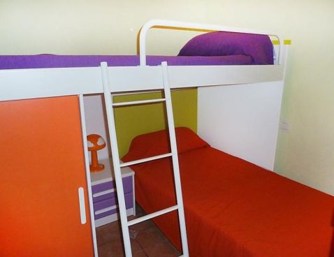 3-room apartment on the ground floor, practical and comfortable furnishings: living/dining room with 1 double sofabed and TV. 1 double bedroom with 1 double bed. 1 children's room with 2 x 2 bunk beds. Open kitchen (4 ceramic glass hob hotplates, microwave, freezer). Bath/shower/WC. Of the swimming pool. Facilities: washing machine. Suitable for families.