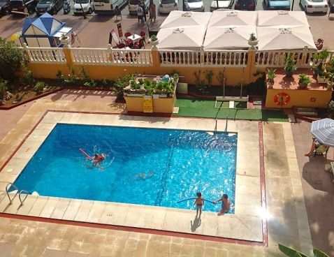 Fuengirola: Comfortable apartment block "Perla II", 7 storeys. In a sunny position, 20 m from the sea, 20 m from the beach, road to cross. For shared use: swimming pool angular (01.06.-30.09.). In the house: restaurant, lift. Shop, grocery, restaurant, café 5 m, sandy beach 20 m. Sports harbour 2 km, golf course 3 km. Nearby attractions: Zoo 3 km, Benalmadena 20 km, Mijas 10 km. Please note: suitable for families.