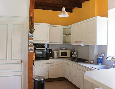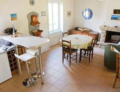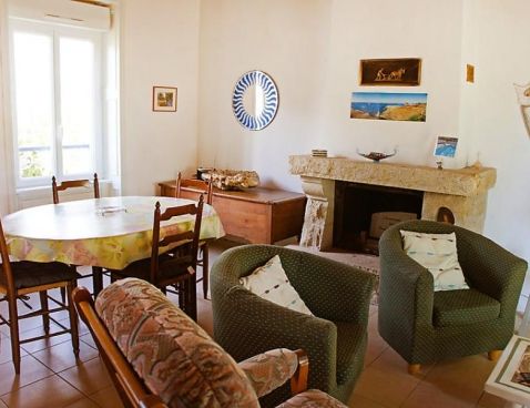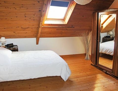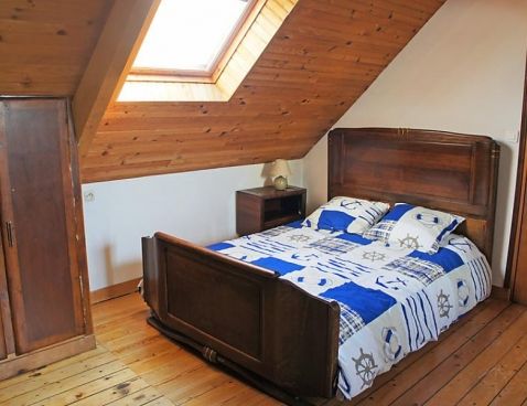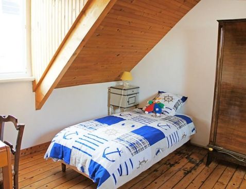 4-room terraced house 75 m2 on 2 levels. Practical and rustic furnishings: living/dining room 25 m2 with dining nook, TV and DVD. Exit to the garden, to the terrace. Kitchenette (4 hot plates, oven, microwave, electric coffee machine) with bar. Bath/WC. Upper floor: 1 room with sloping ceilings with 1 double bed (1 x 140 cm). 1 room with sloping ceilings with rooflight with 1 bed (90 cm), 1 double bed (1 x 140 cm). Shower/WC. Terrace furniture, barbecue (portable). Facilities: washing machine, iron, baby cot. Maximum 1 pet/ dog allowed.