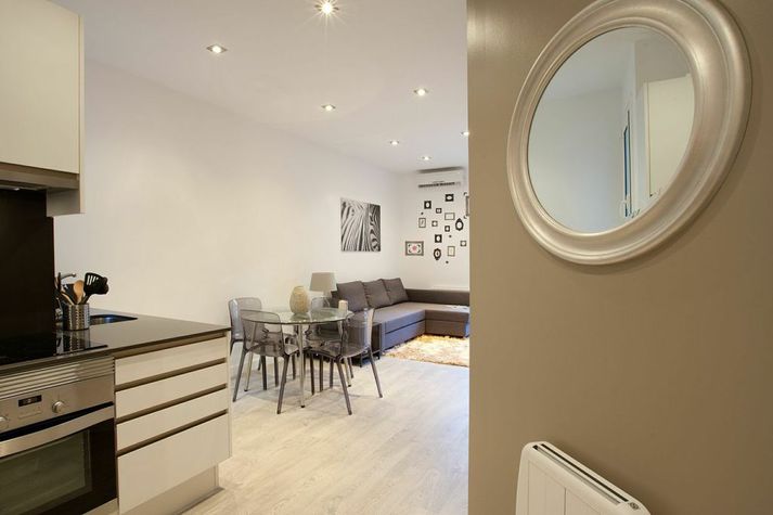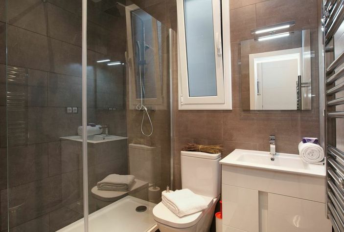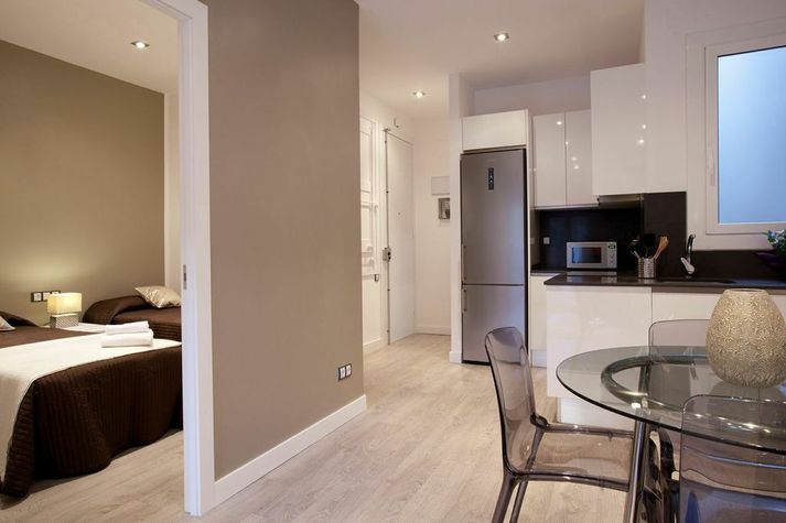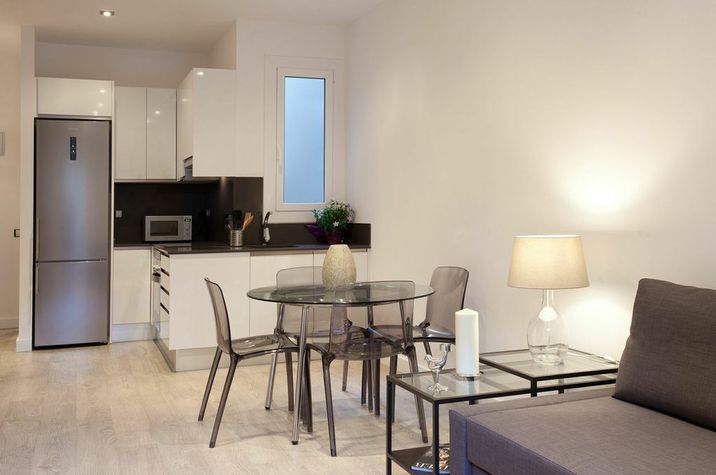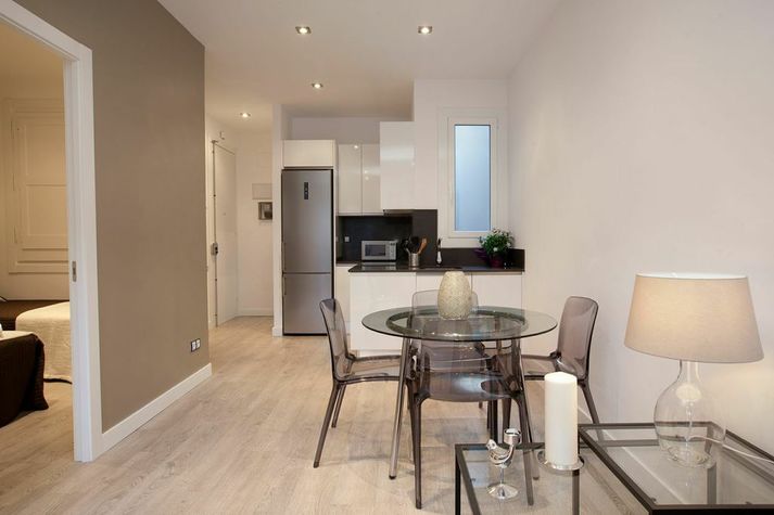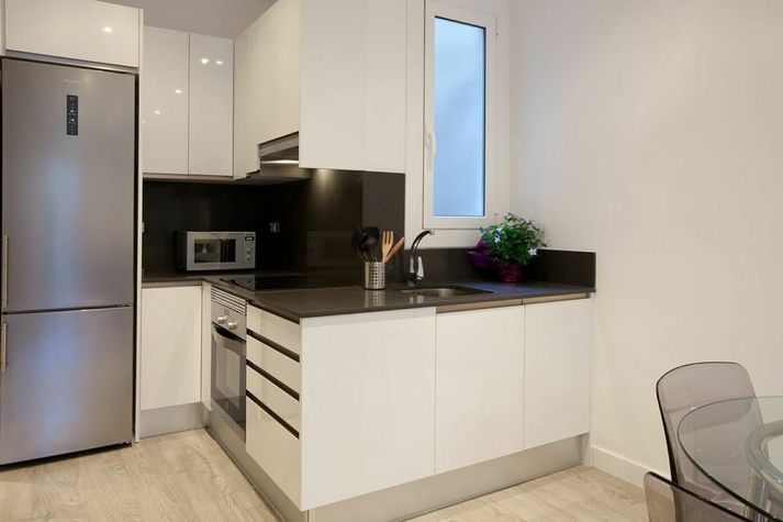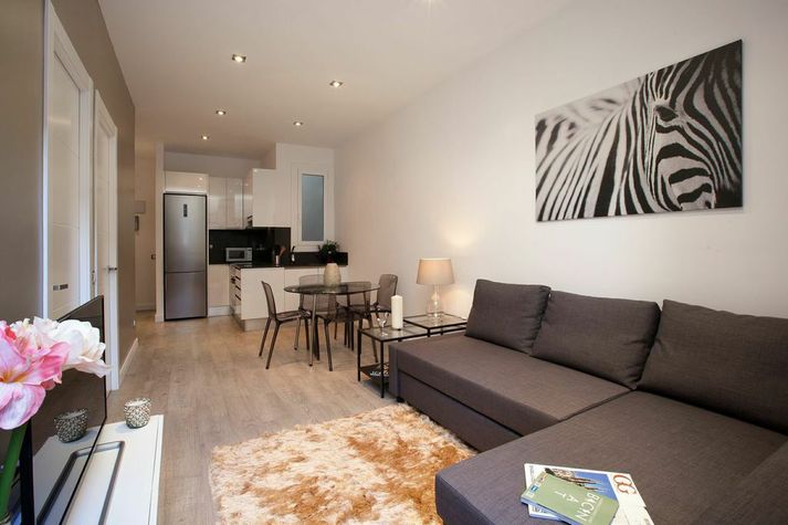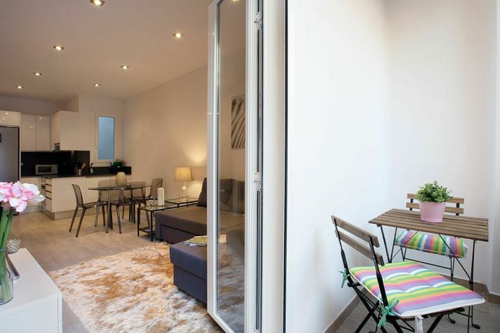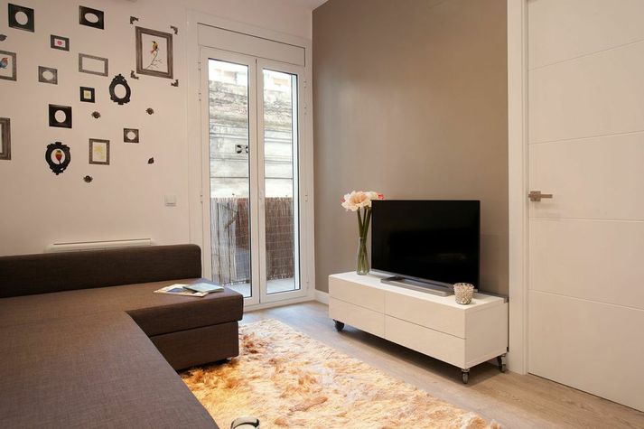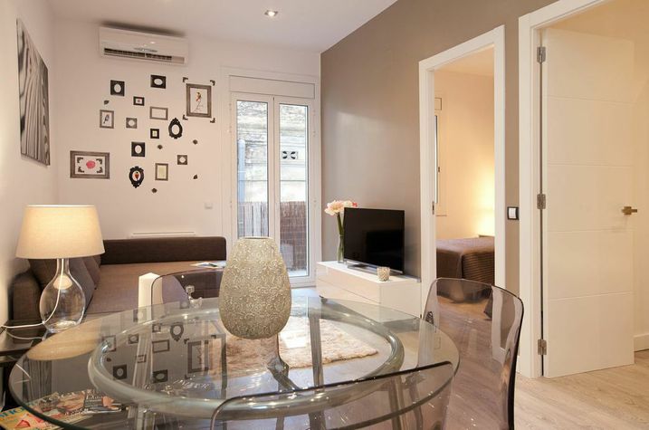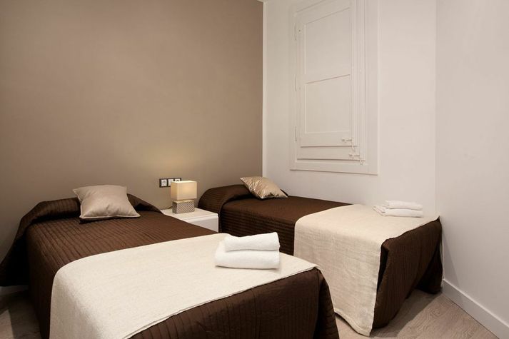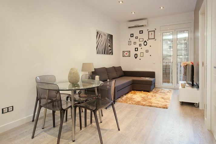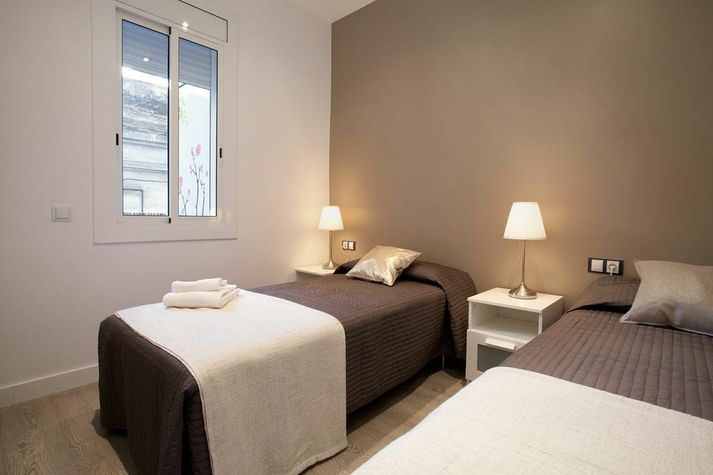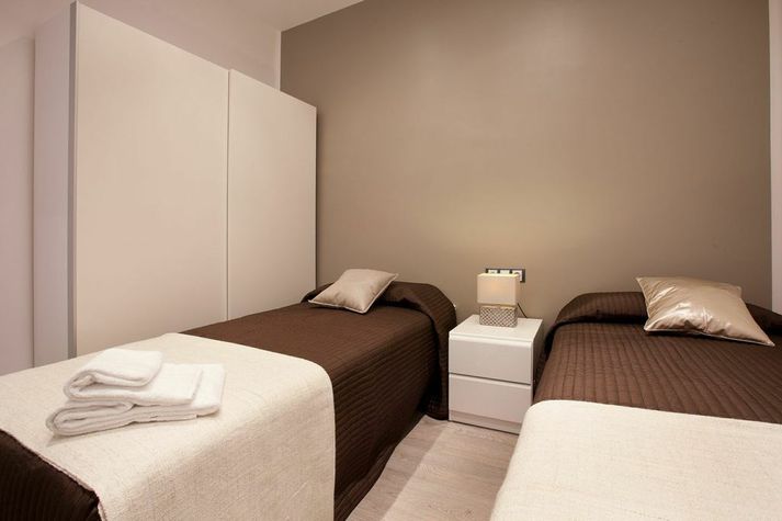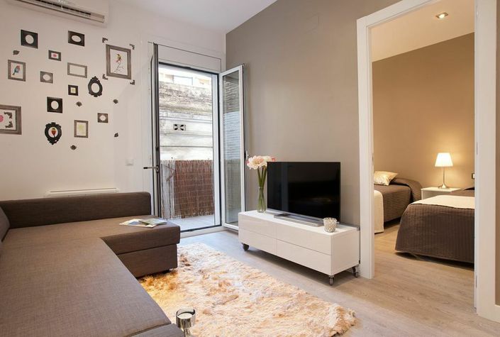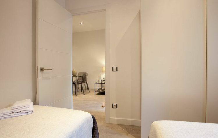 HUTB-010026. New, furnished apartment situated near the Sagrada Familia in a welcoming and pleasing neighborhood close to the metro, bus and tram. The neighborhood is very calm and is full of businesses and nice places to spend leisure time. The apartment has heating, air conditioning and WIFI. There are 2 double bedrooms with two individual beds in each room, and a sunny living area with access to a small terrace with a small table and chairs where you can sunbathe. Moreover, in the living room there is a double sofa bed. The dining room is open to the kitchen, which is new and fully equipped and perfect to prepare the best breakfasts, lunches, and dinners. The apartment has a new bathroom with a large shower. Overall, this apartment is perfect for a stay in Barcelona, whether it be for business or vacation. *** Room Fees *** Occupancy tax: EUR