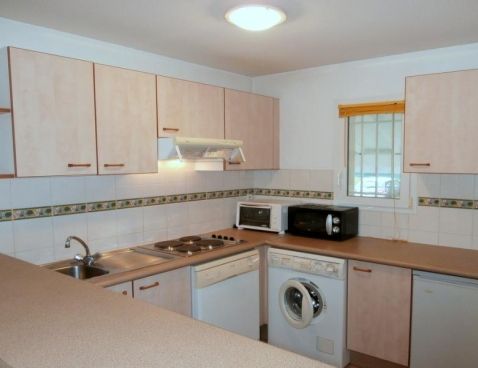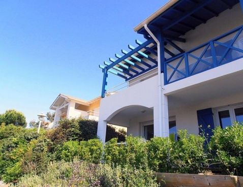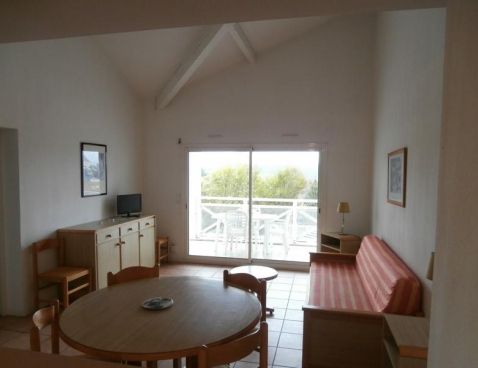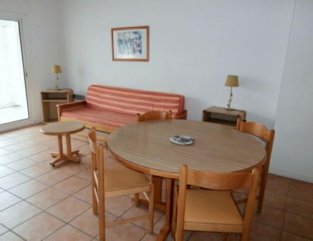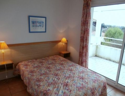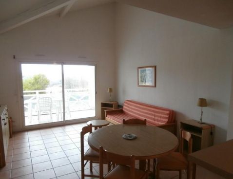 Modern apartment with shared pool. Located on 1st floor, without elevator, in complex, comfortably furnished. Living room sitting with pullo out bed. Functional open-plan kitchen with 2 hotplates. 1 bedroom with double bed (140 cm). 1 bedroom with twin beds (90 cm).\n\nSmall building in private complex in residential area. Located near the sea. Car recommended. Public parking. Shared pool open to the May 15, September 30, weather permitting and excluding annual maintenance closings.
