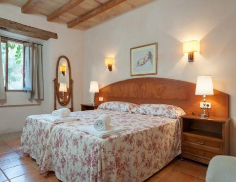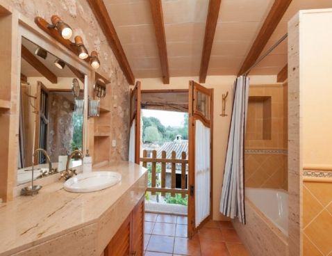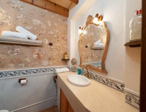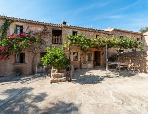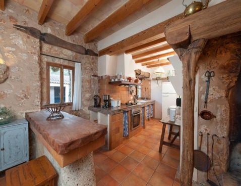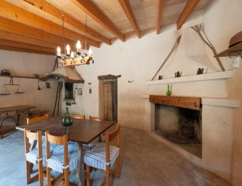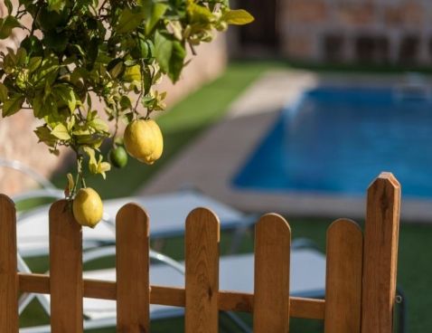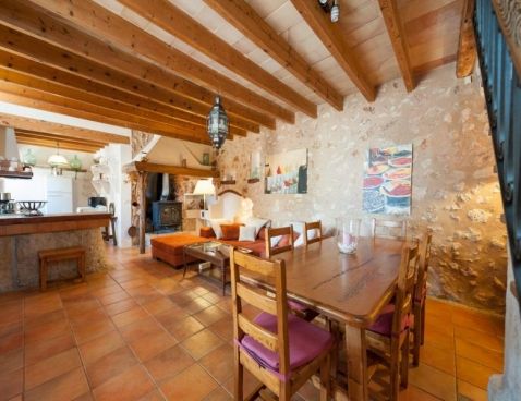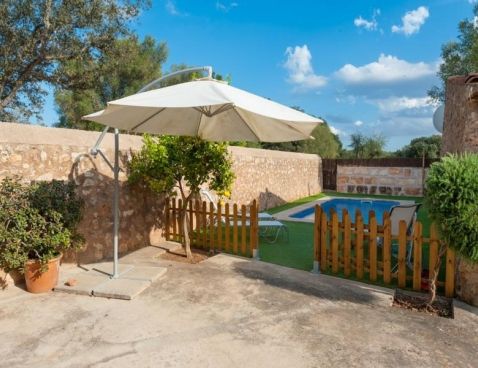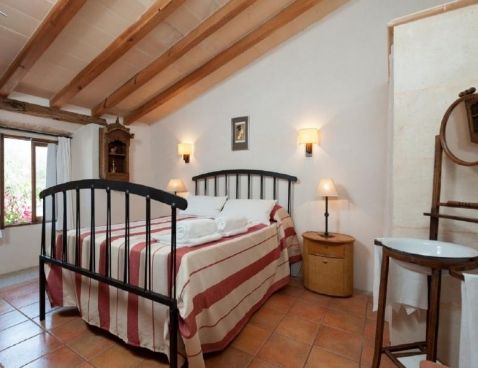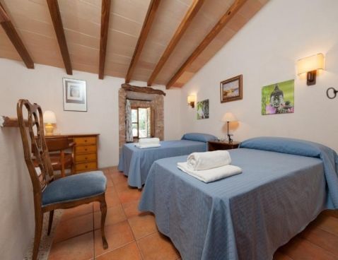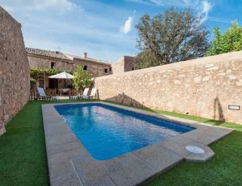 This house in Costitx has 150 m2, 4 bedrooms and capacity for 8 people. The house has the traditional 18th century Majorcan architecture, even though it was remodelled in 2000 giving to the structure a better view of the countryside. The environment of this place is calm and quiet. It is perfect to spend your holiday surrounded by nature. This villa is perfect for families or groups of friends, as it has extent outdoors where you can relax and a pool to have a refreshing dive in. The house has WIFI and satellite TV. The open kitchen has everything you might need during your holiday you cook your favourite dishes with fruits and vegetables from the garden, which you can pick whenever you want. In the plot there is a second kitchen with a traditional wood stove and a log fire. You can as well organize a tempting BBQ in the terrace! In the living room you will find a comfy sofa where you can relax watching TV or playing board games. All rooms have AC, are spacious and have views to the patio. One of them is big enough to install a cot. The 150 m2 terrace surrounds the pool and the house. There you will find a table and chairs covered by a vine arbour, where you can organize long summer meals. The salt private pool measures 6.80 x 2.80 meters and it is well lighted so you can use as well at night. Next to the pool you will find 5 sun beds. The whole plot where the house is located has 28000 m2 and the surroundings are perfect to have long strolls. In the plot there is uncovered space for 5 cars and covered parking for 1 car. The house is 1.8 km away from Costitx, where you will find everything you might need during your holiday: supermarket, surgery, pharmacy, bars, restaurants, etc. If you like astronomy, you will be glad to know that Astronomical Observatory of Mallorca is just 2.2 km from the house. It is possible that you hear some planes sometimes. However, the area is very quiet. The house is located right in the centre of Mallorca so you have easy access everywhere in the island. Palma and Serra de Tramuntana (UNESCO World Heritage Site) are just 40 minutes from the house. 30 minutes drive will take you to the beautiful beaches of Badia d’Alcúdia: Can Picafort, Port d’Alcúdia, Platja de Muro, etc. Included services: - Bedsheets - Towels - Air-conditionning - Parking - Pet \n\n
