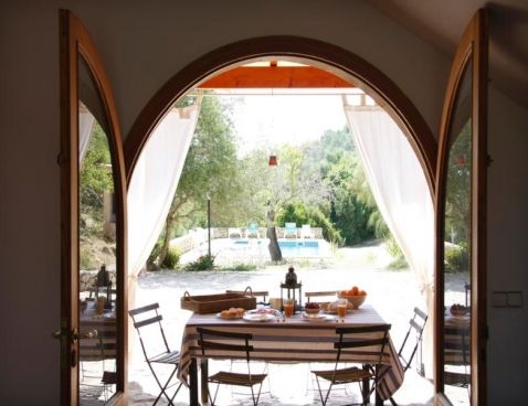 Large country villa with pool and garden. On 2 floors, comfortably furnished. Living room with picture window giving onto terrace. Separate modern kitchen with 4 hotplates. 1 bedroom with double bed, This room has direct exterior access. 1 bedroom with double bed. 3 bedrooms with twin beds.\n\nBeautiful villa in landscaped grounds in quiet neighborhood. Located near green spaces. Car recommended. Private parking with 2 outside garage.