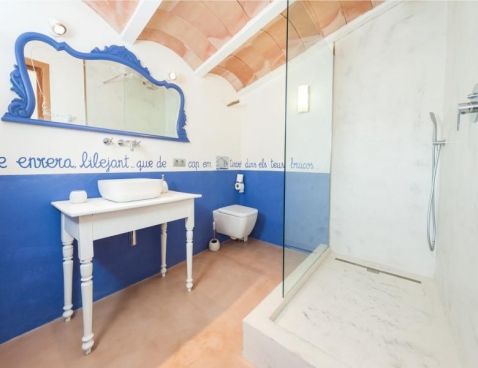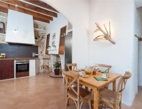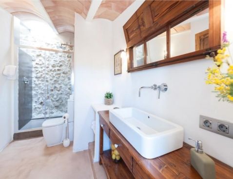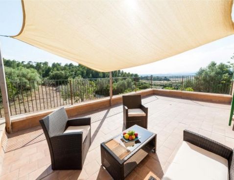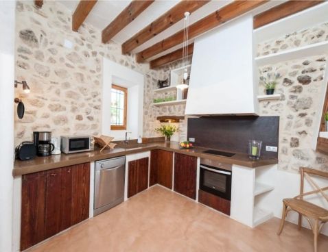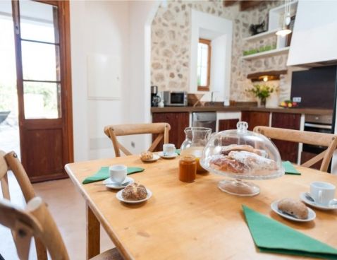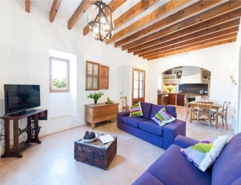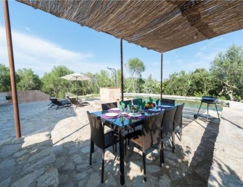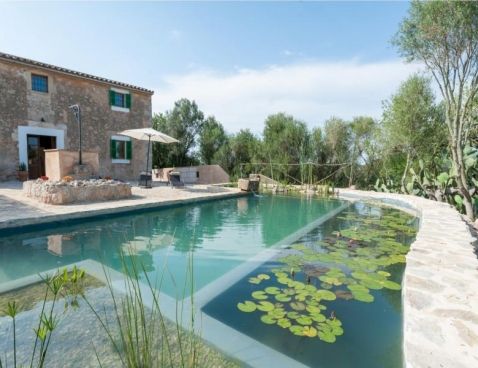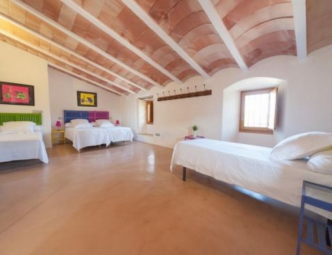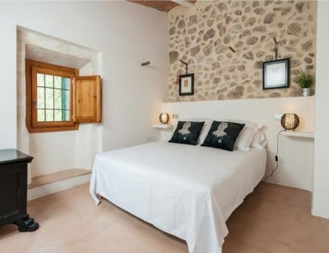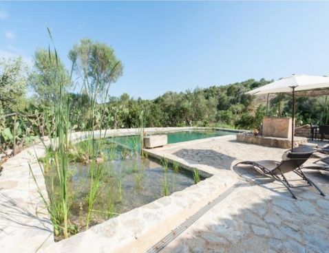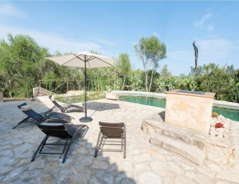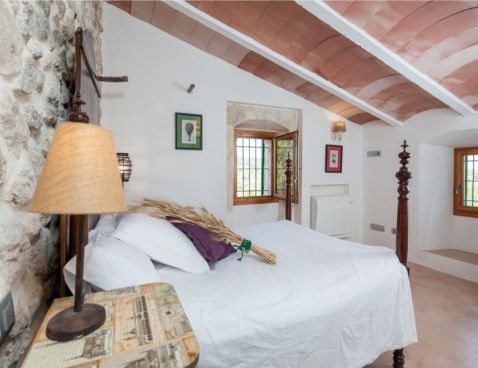 Welcome to Son Vell! This rustic and enchanting villa located in the countryside of Manacor will delight you for sure. It offers the comfort of a house that will make your holidays an unforgettable experience. The spacious two-storey house (300 m2) has four bedrooms and three bathrooms. It’s just perfect for families or groups of friends because it has space for 9 people. Three of the bedrooms are equipped with double beds (two in the first floor and one in the ground floor) and the fourth one counts with a double bed and a single bed in the same space. All bedrooms count with air conditioning and wardrobe. There are 3 bathrooms, one in the ground floor, which counts with bath tub and two in the first floor, which have shower. The atmosphere of the villa is warm and it has rustic details that make the difference. It’s an excellent choice for relax seekers. In the huge living room you will have a pleasant time while reading a book, watching TV or either take a nap. There is air conditioning in the living area. The adjoining dining area, in the same room, counts with a rustic wooden table and seats for 11 people. The open-plan kitchen in this room is equipped with everything you could need for cooking during your holidays: coffee machine, microwave, toaster, vitro ceramic hob, electric oven, dishwasher, fridge with freezer and much more. Obviously you can also find washing machine, iron and ironing table. Outside the house there is space to park at least five cars. Pets are not allowed. The exteriors of the house are beautiful and genuine at the same time: have a barbecue, swim in the pool or just relax. The porch is furnished with a table and 8 seats to have cool dinners in the summer nights. The area surrounding the swimming pool counts with several sun beds. The water cleaning system of the pool, with a size of 8 meters x 3 meters, depends on a special type of plants that clean the water, so it does not use any chemicals, it is biologically sustained. It is like swimming in a lake or river. Although the water has a greenish colour, it is perfectly clean. The finca has 15.000 m2 of land, where you will find several fruit trees like almond trees, orange trees, lemon trees, etc. The house is only 6.3 km far from Manacor and 2.8 km from Son Macià, a small village in the countryside. In Manacor you will find most of the things you will need during your stay: supermarket, medical center, pharmacy, bars, restaurants, etc. In only 20 minutes driving by car you will reach the beach of Cala Magraner or Cales de Mallorca. Pass a pleasant day on the fine grained sand beach or enjoy a cocktail while watching the sun goes down. You will find a good Paella restaurant there, a typical Spanish rice dish with meat, vegetables and seafood. Very tasty and spectacular views included! Apart of this beach area discover Cala Mandia, Cala Anguila and Porto Cristo, with its animated sea promenade, the quiet zone of Portocolom or the Natural Area of Mondragó with its crystal clear waters. The villa Son Vell offers a home away from home, with a rustic flair but very cozy at the same time in one of the nicest and most peaceful zones of Mallorca. Don't spend your holidays anywhere - make your holidays an unforgettable experience! Included services: - Bedsheets - Towels - Parking - Heating Optional services, to pay on-site: - Air-conditionning 10 € \n\n