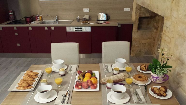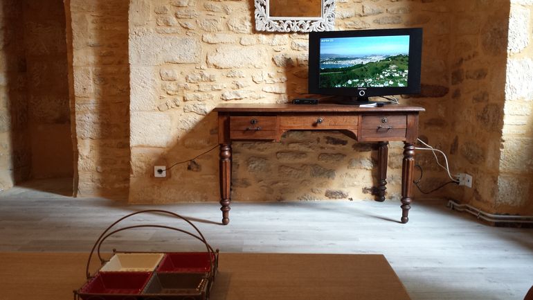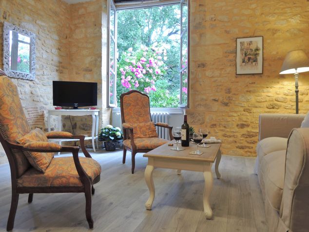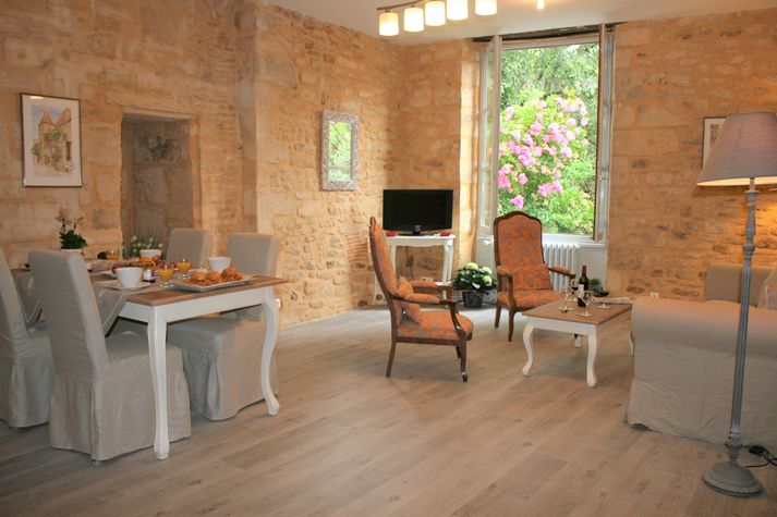 The apartment ‘Le Sénéchal’ is located in the medieval town at 7, rue Fénelon on the second floor of a bourgeois building which houses a hairdresser and beauty salon on the ground floor. The living area of this comfortable and tastefully renovated apartment looks onto the gardens of the Hôtel de Gérard, a historic town house which belonged to one of Sarlat’s former public figures. You will love this bucolic retreat in the heart of the historic town centre. With its generous proportions and peaceful atmosphere, this apartment is the ideal place for a couple, a family or a group of friends to spend a few days.