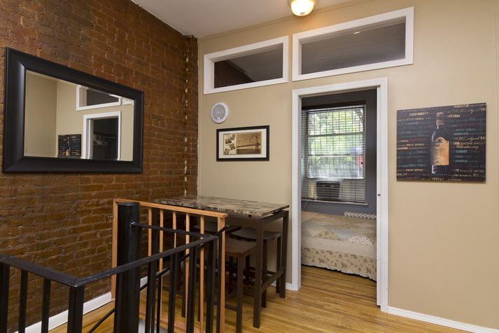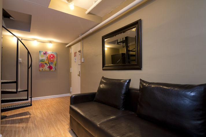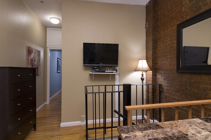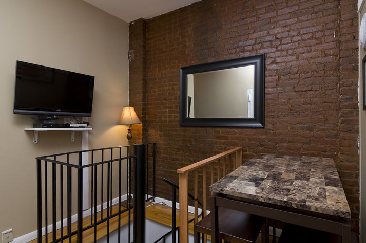 Two levels, three bedrooms, fully furnished apartment in the heart of Midtown Manhattan. The apartment features hard wood floors, partially exposed brick walls, tasteful wall art and the unique characteristic of a spiral staircase. Including a leather sofa and high definition television the living room area is prefect for relaxing after a busy day enjoying all the activities that the city has to offer. Delight in meals in the comfort of your rental with the space friendly marble top breakfast table. The fully equipped kitchen consists of white cabinets, dishware and cookware, and appliances (including dishwasher). Two full bathrooms feature dark shower, marble tub, finish cabinet, and Hollywood lighting above the mirror. There is a Full sized bed in each of the bedrooms for your bedding accommodations. Being on 47th Street and 8th Avenue is perfectly located in the middle of Manhattan for convenient travels throughout the city for your tourism enjoyment. The building is also located just a short walk away from the allure of the lights of Times Square that draws millions of tourist every year. Times Square is conveniently a stop for various subway lines. The area also offers a great selection of fine restaurants including those on Restaurant Row (West 46th Street) and 9th Avenue. There is also a wide selection of nightlife activities from Irish pubs, to piano bars, to comedy shows. New York is also the center of the arts world featuring a wide array of cultural institutions for the performing arts such as Alvin Ailey Dance Company and the various Broadways shows available. Visit Bryant Park for a laid back afternoon and social atmosphere. Here you can enjoy their free movie screenings in the summer or ice-skating in the winter. Rockefeller center is also a major attraction during the Christmas season with the Christmas tree and Christmas decorations. It will truly have you in the holiday spirit. Choose this unit for a soaring experience of luxury in the Empire State.