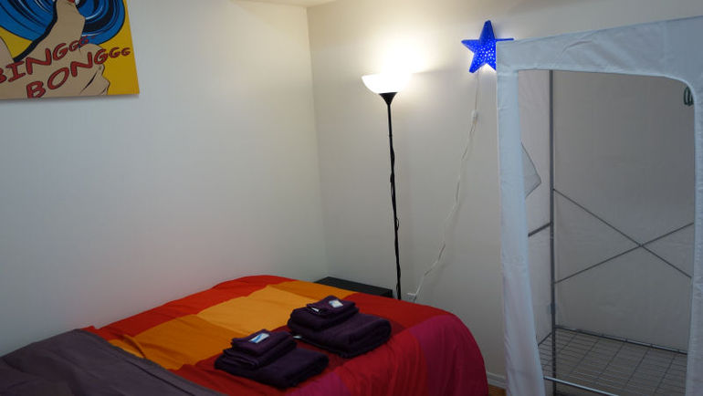 The cosy but comfortable bedroom holds 2 double beds and space for storing personal belongings. A key is provided so as guests can lock the bedroom door when setting off for a day of sightseeing. Wi-Fi and a flat-screen TV with basic channels are available. The bathroom and a well-stocked kitchen are shared spaces.
