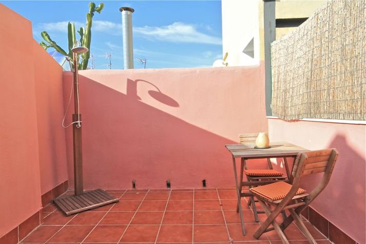 Through a spiral staircase you will access the terrace, small but well groomed, with a table and chairs, umbrella and an exterior shower. It is the perfect place to enjoy some breakfast under the Mediterranean sun which we enjoy 320 days a year!