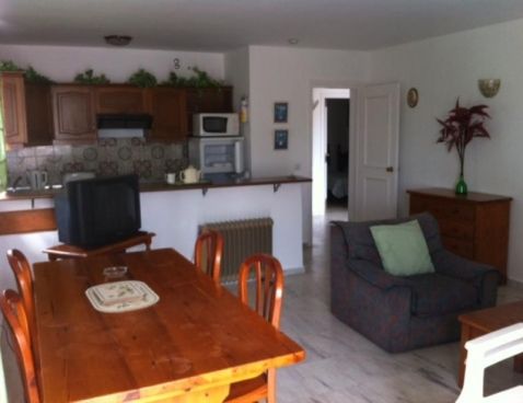 Spacious modern apartment. Located on 2nd floor, without elevator, with comfortable furnishings. Living room sitting are giving onto terrace. Modern open kitchen with 4 hotplates. 1 bedroom with double bed. Room with private bath. 1 bedroom with twin beds. Bed sheets and bath towels included in the price.\n\nComplex of small buildings in private park in quiet neighbourhood. Located near the sea. Accessible on foot. Public parking. Shared pool open to the January 1, November 30, weather permitting and excluding annual maintenance closings.