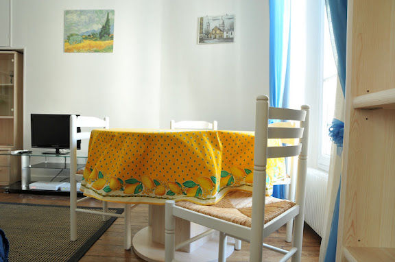 With nearly 450 sq ft, Le Hallé offers all the comforts necessary for a stay of 4 people with a convertible sofa bed in the living room and a double bedroom that contains an electric adjustable bed. The separate kitchen comes fully equipped, allowing you to enjoy meals at home around the large, round dining table in the living. An elegant bathroom with a shower and bountiful closet space to store your belongings complete this apartment.