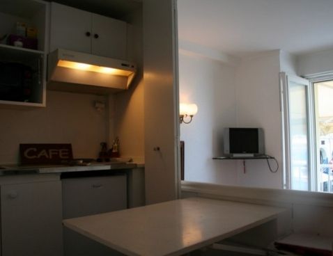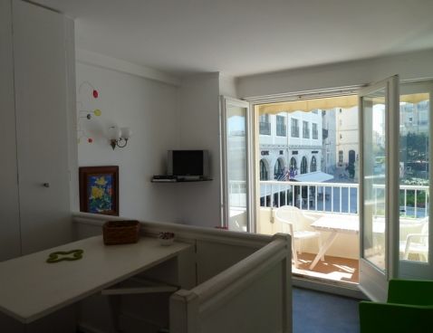 Country studio. Located on No 1 floor, with elevator, in complex, simply furnished. Living room giving onto balcony with single Pull-out bed. Open kitchen with hotplates. \n\nLarge apartment in complex in lively quarter. By the seaside. Accessible on foot. Private parking, underground garage.