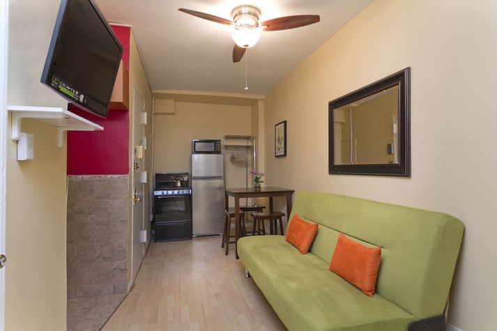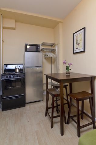 Situated in Midtown West, this 2 bedroom apartment includes all the conveniences of home with a fully equipped kitchen, dining area, and living room. The apartment opens into a comfortable living room area with high definition flat screen television for your entertainment. This are area is perfect for lounging and in-between breaks from the fast pace of New York City. In the adjacent area your find a beautiful dark finish and space friendly breakfast table with seating for three. To the left you will find the kitchen with appliances and utensils ready for your arrival. The granite bathroom has a sliding glass door, soaking tub and includes towels with your rental. In the first bedroom there is a Queen sized bed and high definition television for your entertainment. The second bedroom has two Full sized beds for some versatility in bedding arrangement, with a nightstand, high definition television and space to store your belongings. The apartment is steps away from the attractive and always active Times Square area. Because it is the Times Square area you have access to various subway lines and bus routes facilitating your travel throughout the city. There are great restaurants in the area from diverse ethnic cuisines. The world renowned New York City night life is at your fingertips with various bars, clubs and lounges to enjoy!