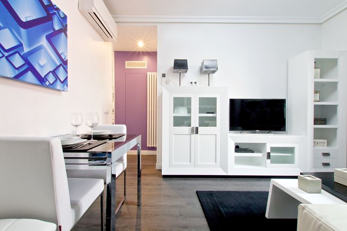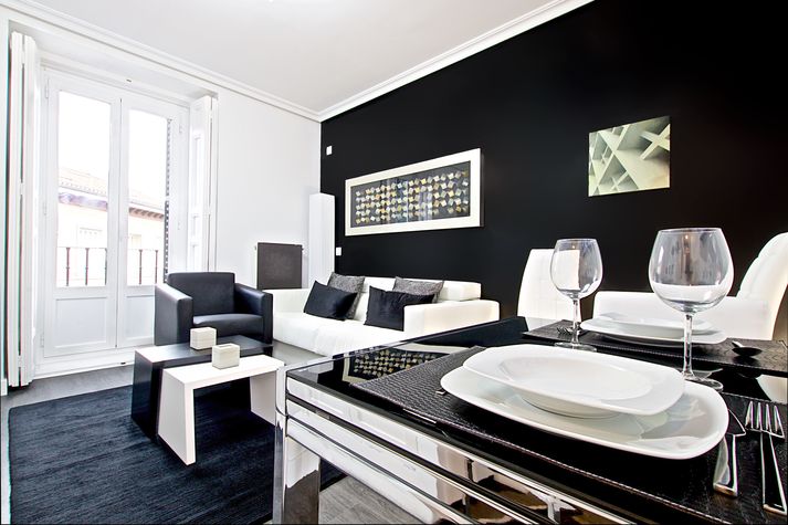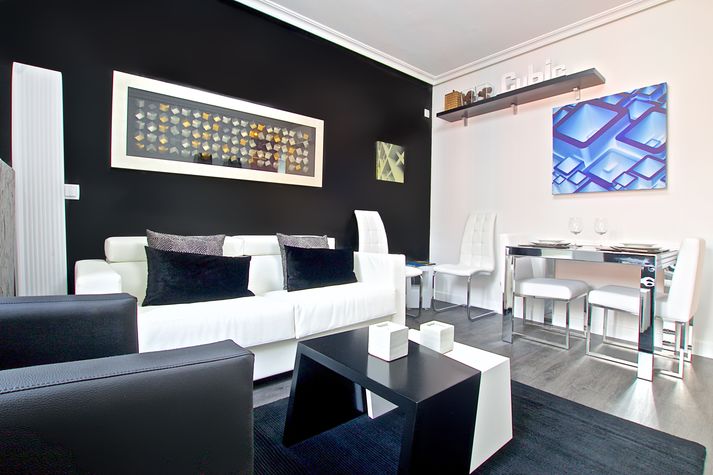 A modern apartment, for up to 4 people, offering a living area with two small sunny balconies, one in the living room and one in the bedroom, one bedroom, living room with sofa bed, one bathroom and fully equipped kitchen, located in 'La Latina' area in the centre of Madrid.