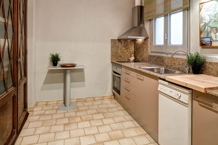 The kitchen is fully equipped and has a small table and chairs. Features and services included: - 1 bedroom with double bed and wardrobe - 2 twin bedrooms with single beds that can be joined upon request - 1 room with granite table for six people overlooking the inner courtyard (view of the Coliseum) - Radiators in each room - Air conditioning in the dining room and in one of the rooms - 1 toilet + sink - 1 bathroom with shower / tub - Traditional Spanish tiled floors throughout the apartment except kitchen and toilets - 1 storage room to hang coats and store bags - Concierge in the building - 50 litre water heater - Fully equipped kitchen with oven, refrigerator, automatic dishwasher, microwave, coffee maker, stove kettle, blender, toaster and a table with 4 chairs - 1 room with washer / dryer / ironing board and iron - Hair dryer - Wi- Fi - Cleaning included for stays longer than 8 days *** Room Fees *** Occupancy tax: EUR 0.72/night/guest