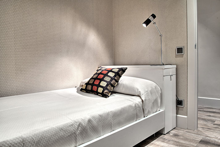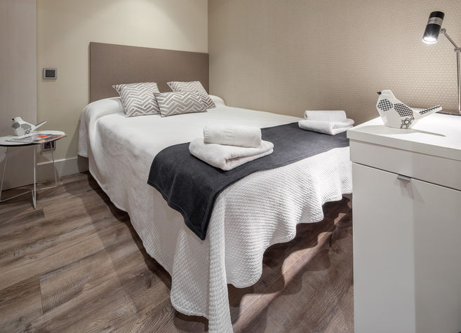 Paseo de Gracia A is an incredible apartment in one of the major avenues in Barcelona and one of the most important shopping area from Spain: Paseo de Gracia. You will find all the well known designer brands and best restaurants and bars from the city. The apartment has a small terrace with table and chairs where you will enjoy wonderful evenings overlooking the Casa Batlló, a building restored by Antoni Gaudí, architect and figurehead of Catalan Modernism. The apartment features two bedrooms: one double room with a bed of 1.35 x 1.90 and a single room, both with comfortable closets. Bathroom with shower. Large living room with a sofa bed special for two people and plasma TV, dining room for 6 and fully equipped open kitchen. Paseo de Gracia A is perfect for up to 5 people. The apartment offers the following amenities and services: -Terrace with table and two chairs -1 Bedroom with double bed of 1.35 x 1.90, large wardrobe and window overlooking the interior side of the building. -1 Bedroom with 1 single bed and large wardrobe -1 Sofa bed ideal for two people -1 Bathroom with shower -Fully equipped kitchen (oven, microwave, refrigerator, dishwasher, Italian coffee maker, kettle) -Washing machine -Dryer -Electric heater -AC / Heating -Wi-Fi -Baby cot and high chair available under request. Paseo de Gracia A is in the same floor of Paseo de Gracia B *** Room Fees *** Occupancy tax: EUR 0.72/night/guest