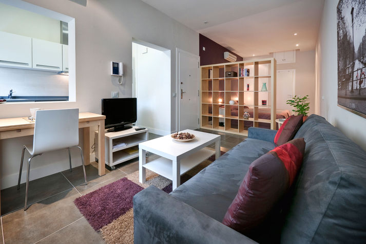 Gran Vía 3B Apartment is a newly renovated apartment located in Gran Vía Area just 50 meters from Gran Vía Street and 400 meters from Puerta del Sol. The apartment features 1 bedroom, a living room, kitchen and a bathroom. The apartment features high quality fittings where design and fine materials go together and is perfect for couples or friends, vacation/holiday or business stays. Internet connection at no extra cost. Amenities and services included: - 1 twin bedroom with 2 single beds placed together - 1 full bathroom with shower, hand basin and toilet - Living room with sofa and chairs - Heating and air-conditioning - Fully equipped kitchen (Fridge freezer, Washing Machine, Microwave, Kitchen-ware) - TV - Towels and bed linen - Internet WI-FI - Check in at the apartment on the 24th, 25th and 31st December is strictly only possible before 20:00. Reservations with check in after this time will not be accepted. *** Room Fees *** Occupancy tax: EUR 0.72/night/guest