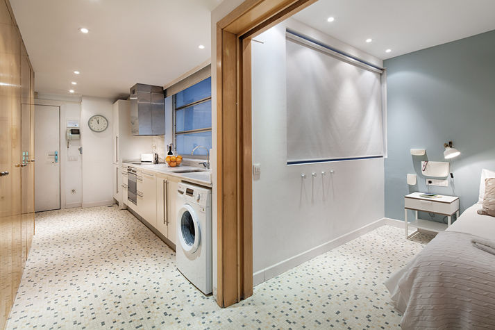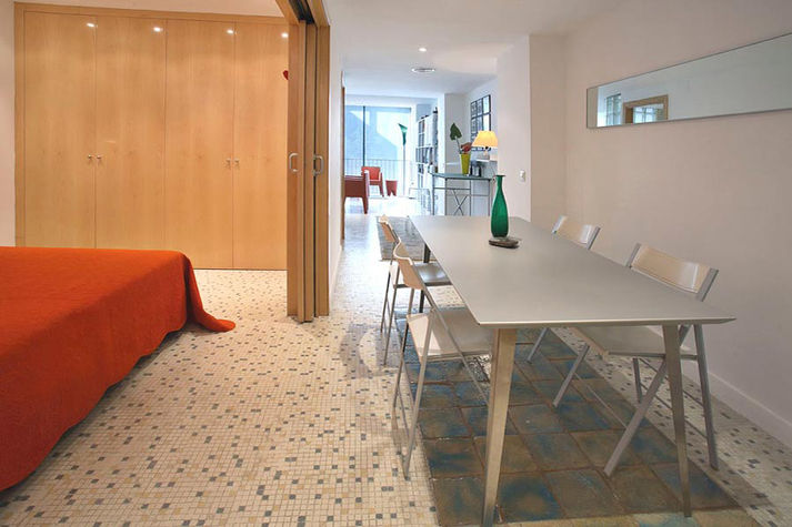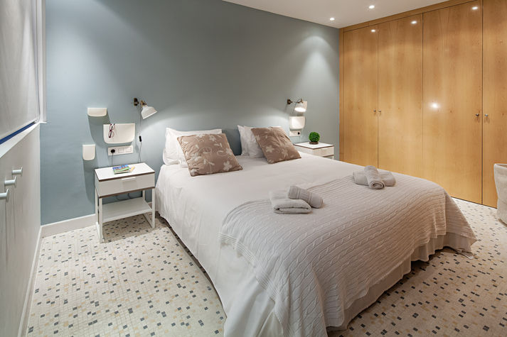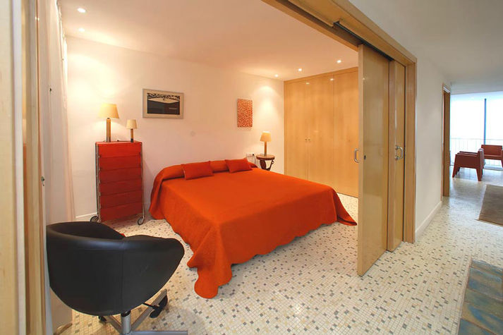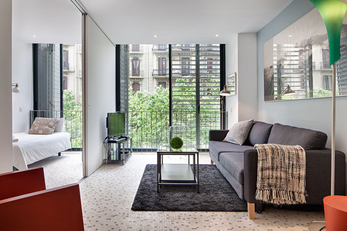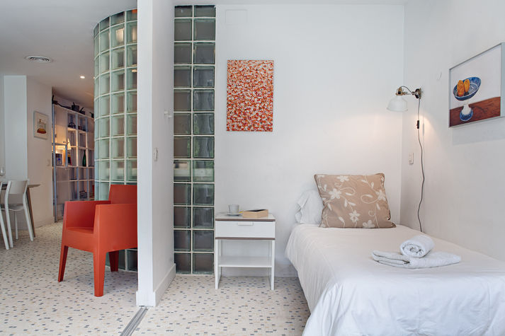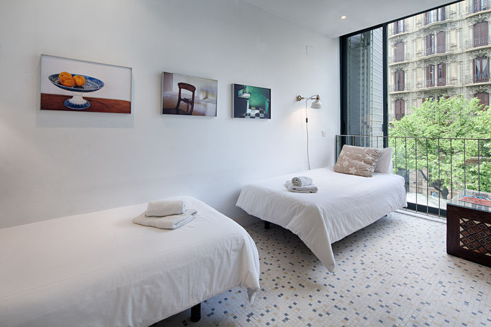The Pedrera apartment in Barcelona is situated in Rambla Catalunya, a smart boulevard lined with boutiques and outdoor cafés. Fashionably decorated throughout, the apartment features one bedroom with two single beds placed together, and a large, stylish living room with 2 sofa beds. It can comfortably accommodate 4 people. The apartment offers the following amenities and services: 1 bedroom with two single beds placed together (180cm x 200cm) and a large wardrobe. 1 bathroom with shower and large wash basin and toilet. Living room with armchairs and sofas. The sofas can be used as single beds (140cm x 200cm). The windows in the living-room faces Rambla Catalunya. Table and chairs for four people A well-equipped kitchen (oven, fridge, toaster, coffee maker, microwave and dishwasher) Air conditioning / Electric heating TV with local channels only (flat screen 32" LED) DVD Player CD Player Internet wifi Washing machine Safe Box Hairdryer Iron and ironing board Towels and linen are provided Maid service from 8 days staying A baby travel cot and baby’s high chair free of charge *** Room Fees *** Occupancy tax: EUR 0.72/night/guest
