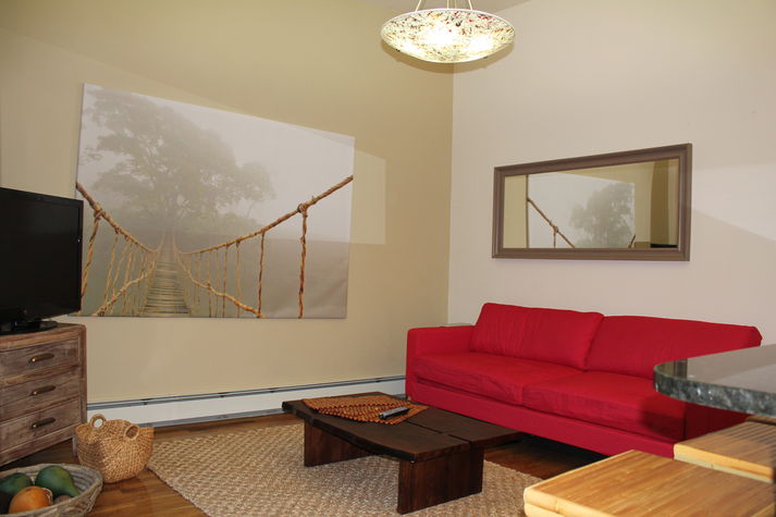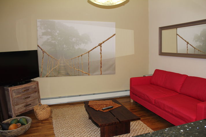 6. One queen-size bed, one full-size very comfortable sliding sofa bed and air bed for the 5th person