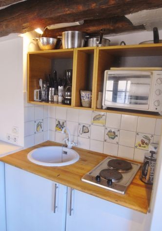 Ideally located in the middle of the Marais district, in a quite street just beside the suggestive pedestrian Sainte-Catherine Square, this lovely and comfortable 20 sqm is at the 5th French floor of 18th century walk up building and it sleeps 2 people. The apartment is equipped with a Wi-Fi Internet connection, cable television, and a telephone for receiving and making free calls to fixed lines in Europe, Canada and the United States.