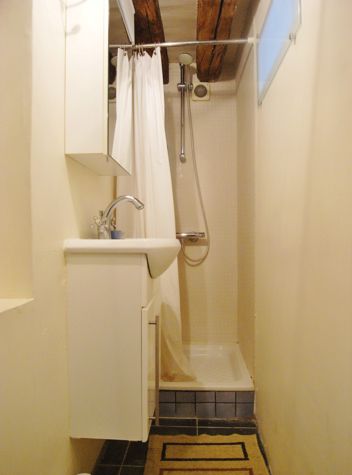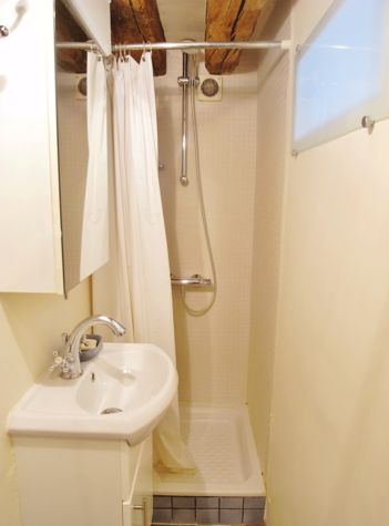 Bathroom The bathroom (about 4 sqm), with tailed floor, includes washbasin, toilette and a shower. Also here there are some built-in wall closets and shelves. The area Marais is a neighborhood in constant evolution and revolution: semi-marshland in ancient times, it gradually became an agricultural zone, a religious settlement, and home to many magnificent palaces and squares; afterwards it became known for a progressive decline that led it, in the not so distant past, into poverty.