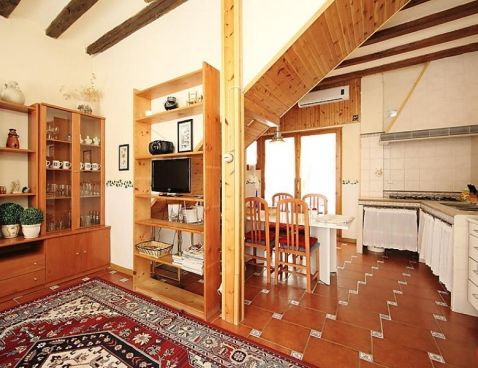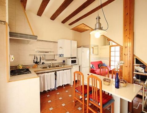 "Casa de Pescadores", 3-room house 80 m2 on 2 levels. Living/dining room with 2 sofabeds, TV and radio. Open kitchen (5 hot plates, oven, microwave, freezer). Sep. WC. Air-conditioning, forced-air heating. Upper floor: 1 room with 1 french bed (135 cm). 1 room with 1 bed and bath/WC. Facilities: washing machine, hair dryer. Exit from the living/dining room to the little courtyard, 3 m2. Bath/WC, with access to the bedroom with the double sofa bed. Separate WC, door to outside. Iron. HUTB008954 Included: Cot (up to 2 years), Final cleaning, Local tax, Laundry (initial supply of bed linen and towels) \n\nTerraced house "Pintor Miquel Villa". In the resort, 200 m from the sea, 200 m from the beach. Public parking on the road. Grocery, restaurant 50 m, bus stop, railway station 300 m. The beach is accessed by an underground passage. Direct train connections to Barcelona, 25 min.