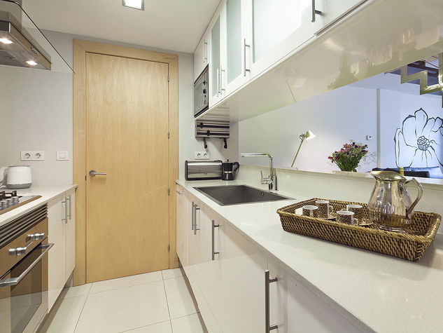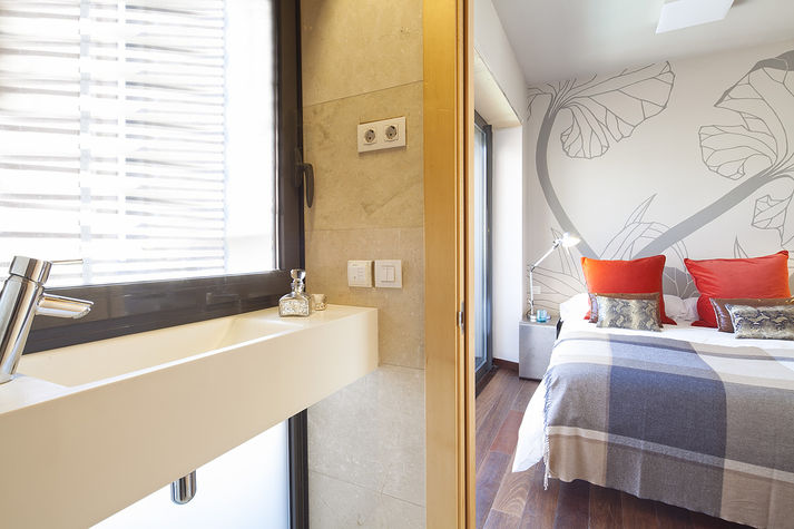 The closest Metro station is Lesseps ( L-3) Barcelona Garden Attic IV is an elegant and comfortable apartment divided into three levels which make the entire flat look dynamic and elegant. One large living/dining room with the entrance onto the balcony and a fully equipped kitchen are situated on the second level. The first level is a calmer part. It has three comfortable double bedrooms, one of which is a suite with a private bathroom, closet and a balcony.