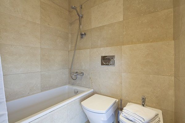 The other two bedrooms have two beds each one and there is another bathroom with a shower. On the third level you can find a large balcony where you can relax, have a drink and it is ideal for romantic evenings. This apartment can accommodate 6 people. The kitchen is equipped with a dishwasher, microwave, coffee machine, electric cooker, kettle, oven, fridge, fridge-freezer, and vitroceramic cooker.