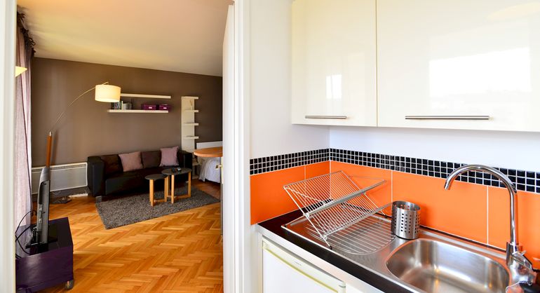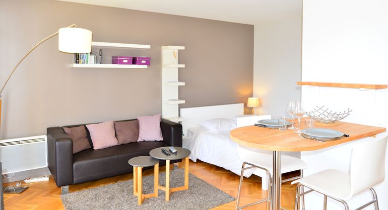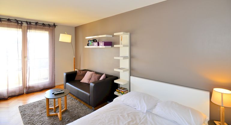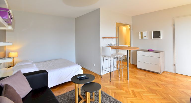 This charming T1 bis, with terrace, is your best ally for your holiday or business stay in Lyon! Near Bir Hakeim Square and its shops, 15 minutes walk from the Part-Dieu station, you will appreciate the location of this apartment will make you quickly in the center or join the main roads. The apartment has a surface of 32 m2 and is located on the 6th floor of a building with elevator. It consists of an entrance with cupboards, a main room organized spaces including a sleeping area with a double bed, a terrace, a separate kitchen, a separate bathroom and separate toilet. From the terrace you can enjoy the view of the small park in the new district of Buire. Parking possible on request.