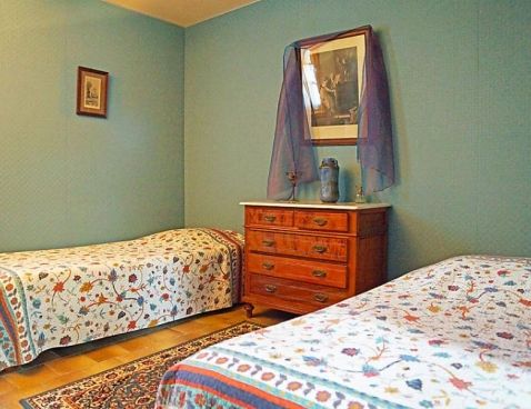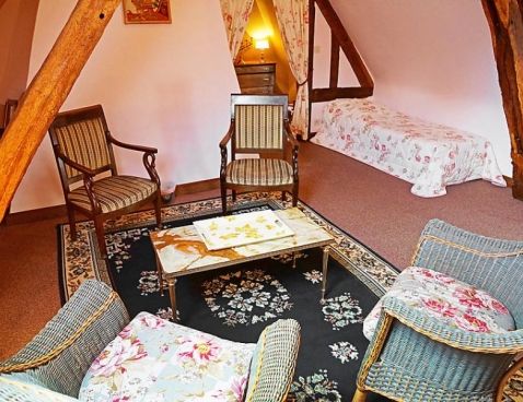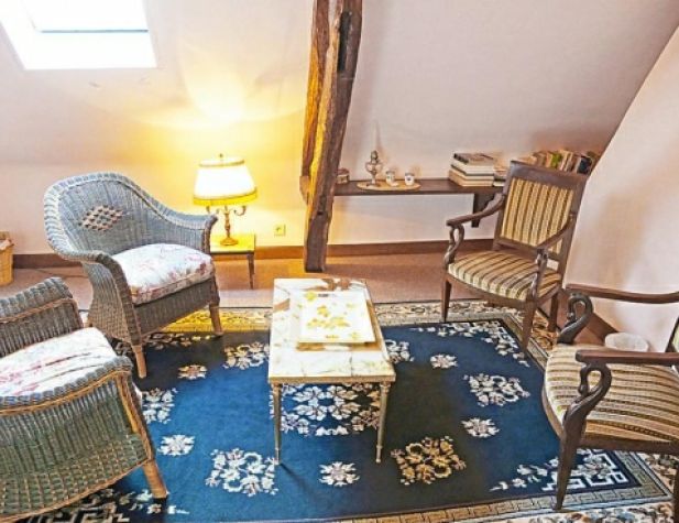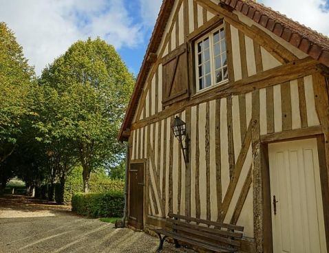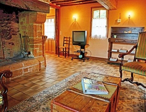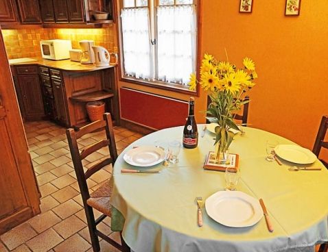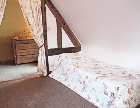 4-room house 120 m2 on 2 levels. Rustic furnishings: living/dining room with open-hearth fireplace and TV. 1 room with 2 beds. Open kitchen (3 hot plates, oven, microwave, freezer). Bathroom, sep. WC. Upper floor: 1 room with 1 bed. 1 room with 1 french bed. Shower/WC. Electric heating. Heating available only from 01.09. to 01.06.. Terrace furniture. Facilities: baby cot for up to 2 year olds, logs (extra). Reserved parking. Gardens around the house. Wood for the fireplace to be paid for on site. Electric heating to be paid for on site. Included: Cot (up to 2 years), Final cleaning, Extra bed, Laundry (initial supply of bed linen and towels) Available on site with supplement: Breakfast 10.0EUR per person/day Mandatory extra services on site: Heating 0.07EUR per kWh (kilowatt hour) \n\nCrouttes 6 km from Vimoutiers: Old single-family house "La Boulangerie", built in 1761. Outside the resort, 4 km from the centre, in the countryside. For shared use: property 2 ha with pond. In the house: central heating system, washing machine, tumble dryer (for shared use), heating to be paid on the spot (01.11.-31.03.). Breakfast possible on request (extra). Parking on the premises. Shop 6 km, restaurant 4 km. Please note: car recommended. The owner lives on the same property. The house is situated on a historical site visited from Easter to the end of September every day except Tuesdays from 1400-1800 hrs: gardens with small stretch of water (no railings), chapel, old cider press. On site: guest rooms, restaurant, tea room, between May and SEptember possible to prepare small meals on request, to be paid for on site.