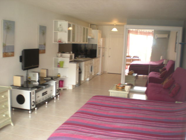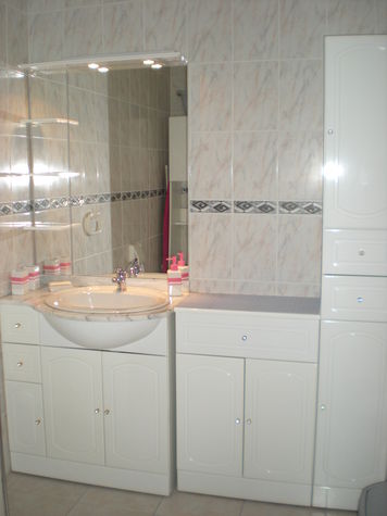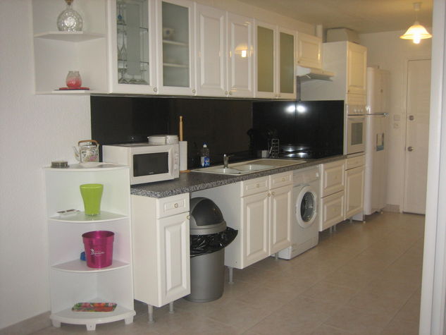 washing machine, ironing board and iron, spreading, garden table and 6 chairs, 2 door wardrobe with mirror, a desk, a dining table and 4 chairs, 1 king Zize 2m x 2m for 2 people , 1 sofa bed clic clac for 2 people, bathroom with all the storage and a large shower with hydro massage jets all ......
