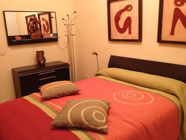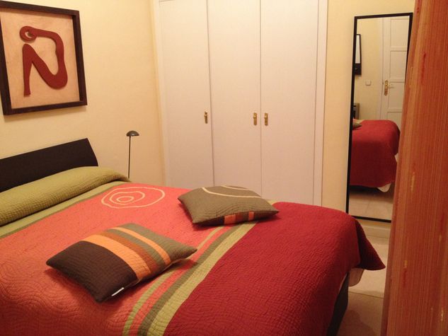 Bright and cosy, the apartment includes a warmly decorated bedroom with a double bed and a chest of drawers. The open plan living room/kitchen is well-equipped and includes a sofa, dining table and the cooking appliances needed to prepare home cooked meals. A washing machine, dryer and iron are also available.