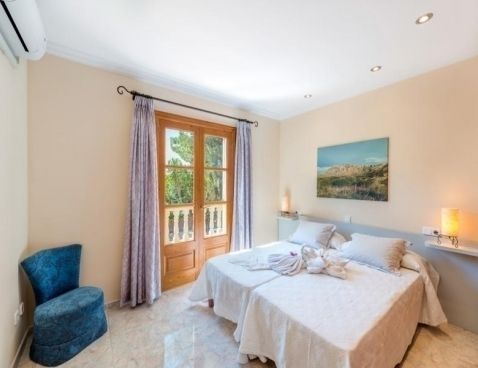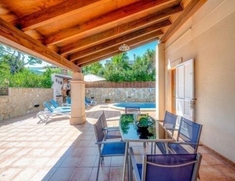 2-story home which can comfortably accommodate 6 people. The property is located in a quiet residential area of Colonia de Sant Pere. In the exterior there is a fantastic chlorine 8x4m pool with a depth ranging from 1.20m to 1.70m. Around the pool there are a total of 4 sunbeds and 1 umbrella to disconnect sunbathing. The paved area around the house has a total of 240m2 and there, near the pool, there is an extraordinary area with 1 fixed barbecue and 1 sink, where you can delight your guests with your delicious dishes cooked outdoors. The two porches of the property are wonderful; there is a 25m2 furnished one upon entering the property, where you can enjoy snacks, and another of 35m2 on the side of the house, also furnished, where you can share lunch or dinner with your loved ones. The home has 2 fantastic 40m2 furnished terraces on the 1st F, one in the front and 2nd in the rear; both terraces can be accessed through bedrooms, one through bedroom 1 and the other though bedroom 2. The privacy of the property is partial and you can your vehicle the street. Once you access the house, there is the air conditioned living room to your right. In this room you can relax watching satellite TV or through a good book. From this area you have direct access to the furnished porch on the front of the house. The dining room offers a fantastic table to share endless after-eating talks with your loved ones. The kitchen, also furnished, is independent and is located right across the living room door. It has everything you need to prepare any dish you want, including electric stove. The laundry area is independent and has 1 washer, 1 iron and 1 ironing board. There are 3 bedrooms in the house, all located in the 1stF, 2 with 2 twin beds and 1 with a double bed; they also have wardrobes and air conditioning. If needed, remember that you have access to 1 crib for younger children. This property has a total of 3 bathrooms, 1 bathroom on the GF, and the remaining 2 in the 1stF, 1 with bathtub en suite and 1 with shower. The surroundings of this property are very quiet as the town of Colonia de Sant Pere is not very touristy. This property is located in a small residential complex near the beach and the Nautical Club of this town. In the vicinity (about 4km away) you will find beautiful coves such as Cala Na Clara, which is known for its clear waters and tranquility. You can also go for a walk or take a boat trip, since there businesses offering such services in the area. If you just want to enjoy a fine white sand beach, just 14 min. away you can drive to the Son Serra de Marina, which is also characterized by its crystalline waters and its wide beach. This beach area has a restaurant which serves fresh fish. If you prefer to make a cultural visit, in only 7 min. by car there is the village of Betlem, in which you can visit the chapel, and every Wednesday there is a market in Arta. Note: We cannot accept guests under 20 years old, unless they are accompanied by their parents. We need copies of the passports of all guests in order to accept the booking. Pets are not allowed at the property. The holding of events is not allowed at the property. Included services: - Bedsheets - Towels - Air-conditionning \n\n