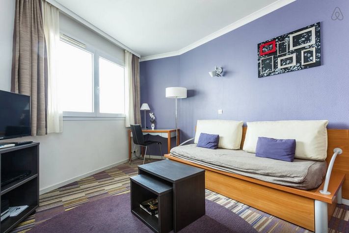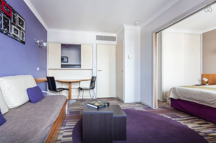 In a 4 stars ADAGIO Residence, comfortable apartment, well equipped, with balcony, ideally located close to Paris and in the heart of the first European business center of "La Défense".